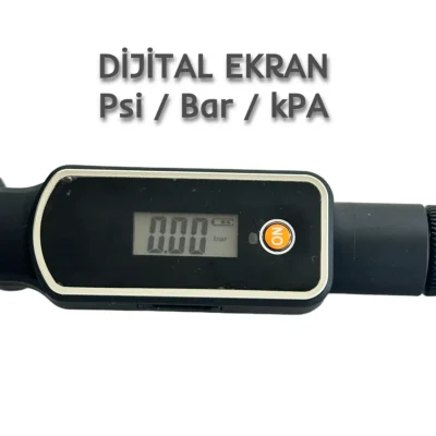 Dijital Ekranlı Bisiklet Pompası – 160 PSI Basınç Göstergeli Taşınabilir Pompa